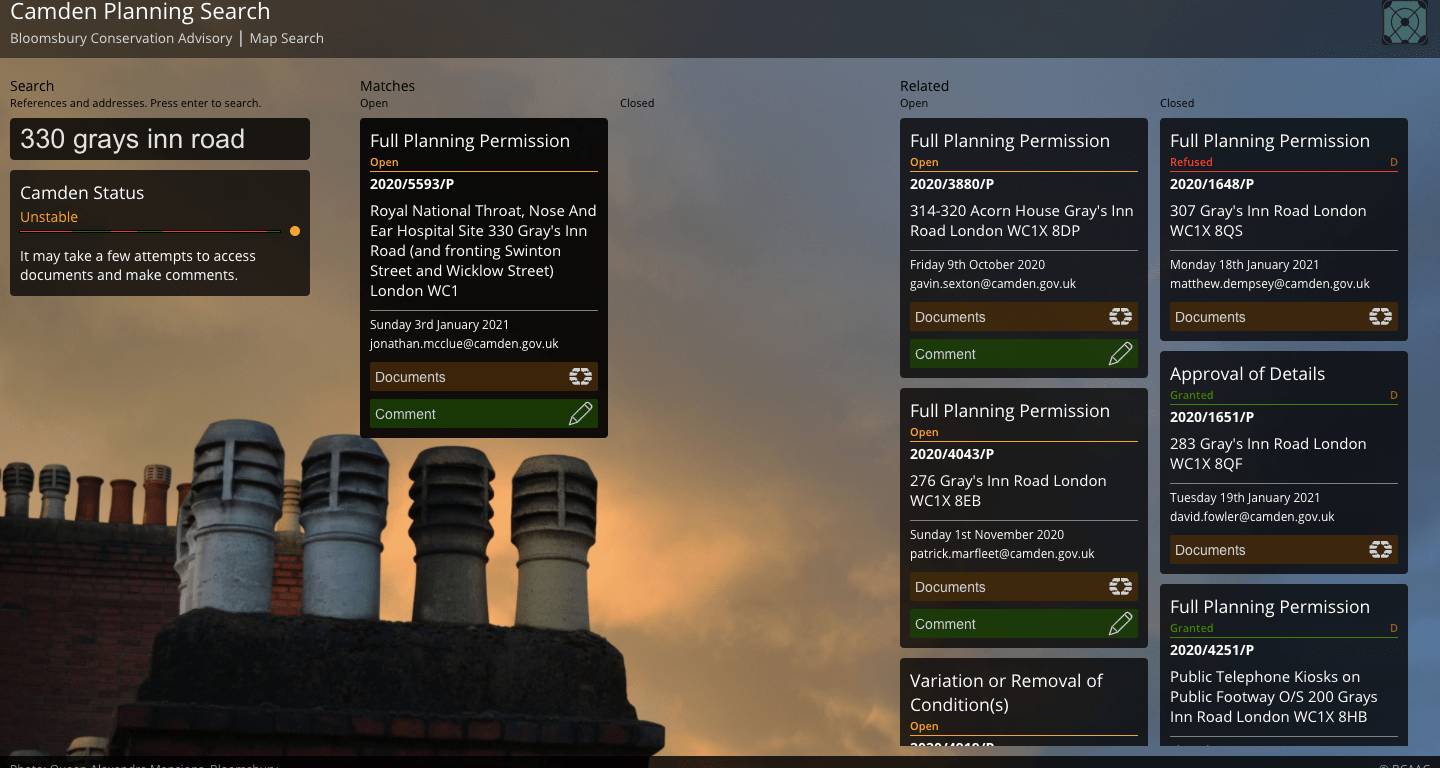 Fed up with Camden’s notoriously outdated and rubbish planning search I have created a brand new one for all to use.