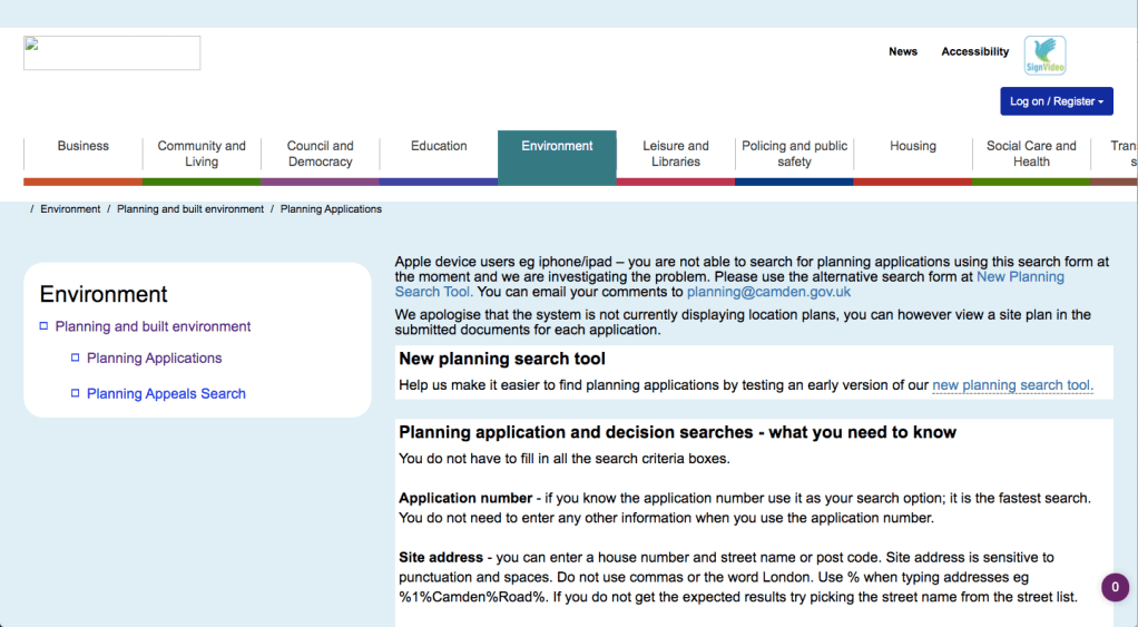But it gets even more farcical than that. Because long before the scheme was made public I was contacted by an officer interested in my own web projects (a planning search and a planning map) to discuss methods of public engagement with planning and how they can be improved – and indeed, whether Camden could help with my own projects.